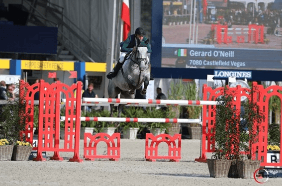 Comprado aos 3 anos pelo irlandês Martin Egan, o Castlefield Vegas fez sua estreia internacional com Philipp Carey antes de encontrar Gerard O’Neill em 2017. Os dois competiram no Campeonato Mundial de Young Horse e ficaram em segundo lugar em uma prova de 1,40 m. No ano seguinte, o cavalo castrado participou do Campeonato Europeu Júnior em Fontainebleau com Jason Foley. Este foi um campeonato marcante com três medalhas no mesmo fim de semana! Ao mesmo tempo, Gerard O’Neill continuou a montá-lo, principalmente no CSIO3 * em Drammen e Uggerhalne em 2019, onde fez parte da equipe vencedora! Um ano depois, Castlefield Vegas ganhou novamente o ouro no evento por equipes no CSIO3 * em Drammen, desta vez com Jason Foley! As cores irlandesas parecem trazer-lhe sorte …