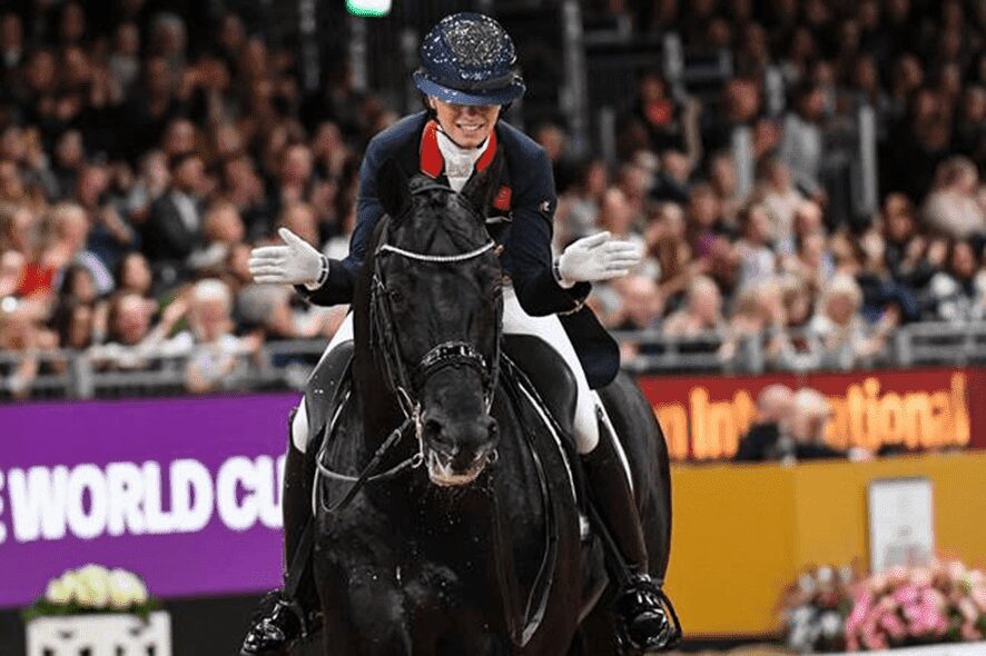 Charlotte Fry chegou perto da famosa barreira dos 80% com Glamourdale (de Lord Leatherdale). A dupla recebeu 79,826% dos juízes para o teste neste Grande Prémio. Eles foram unanimemente colocados em primeiro lugar, tornando-os os vencedores impecáveis em mais de três por cento.
