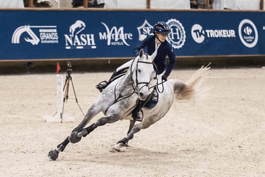 A amazona francesa Juliette Faligot confiou sua égua de 14 anos, Arqana de Riverland , ao cavaleiro britânico de saltos de obstáculos, John Whitaker. Juntamente com a égua SF, o cavaleiro saltou com sucesso até o nível de 1,55m.
